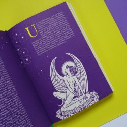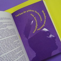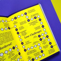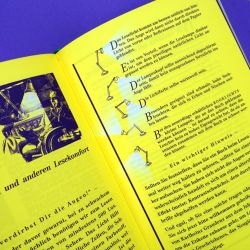 Ihr seht schon, das Buch enthält eine kunterbunte Mischung über das Lesen und die Liebe zum Buch! Man schmökert darin, liest sich irgendwo fest und schlendert zum nächsten Highlight! Erwähnenswert ist auch die auffällige Gestaltung. Die Grafiker Andrew und Jeff Goldstein haben altmodische Schriften mit peppigen Farben verbunden. Da leuchtet mir ein kräftiges Gelb entgegen, charmant mit Violett-Tönen kombiniert! Es gibt durchgestrichene Partien, kreisförmigen Text, Auszüge aus Wörterbüchern, Seiten wie aus einem Poesiealbum, kunstvolle Verzierungen – ein Spiel mit Farben und Formen, ein Feuerwerk der Typografie! Kurz: es ist das perfekte Lesebuch für Buchmenschen!